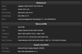 La configurazione hardware comprende anche una CPU Core Ultra 7 265K di Intel (i moduli Viper Xtreme 5 sono Intel XMP 3.0 Ready) e una motherboard Z890 AORUS Tachyon Ice di GIGABYTE, oltre alla memoria RAM citata in precedenza (e utilizzata in single-channel).